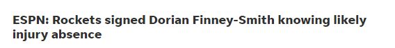ESPN名記蒂姆-麥克馬洪近日在參加節(jié)目時(shí)表示火箭對(duì)于芬尼-史密斯目前的情況并沒有感到意外。火箭在簽約芬尼-史密斯前就已經(jīng)知道他的身體狀況,并做好了他無法參加訓(xùn)練營的準(zhǔn)備。