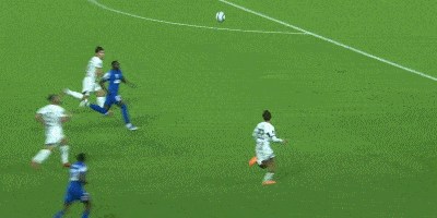 第39分鐘,馬納法左路兜射,皮球擦柱而出